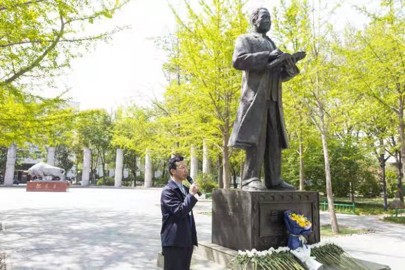 李浩川简要介绍了吴绍骙先生的基本情况和事迹。参加活动的师生依次向吴老铜像敬献鲜花、鞠躬、默哀,表达对吴老的深深思念与缅怀之情。
