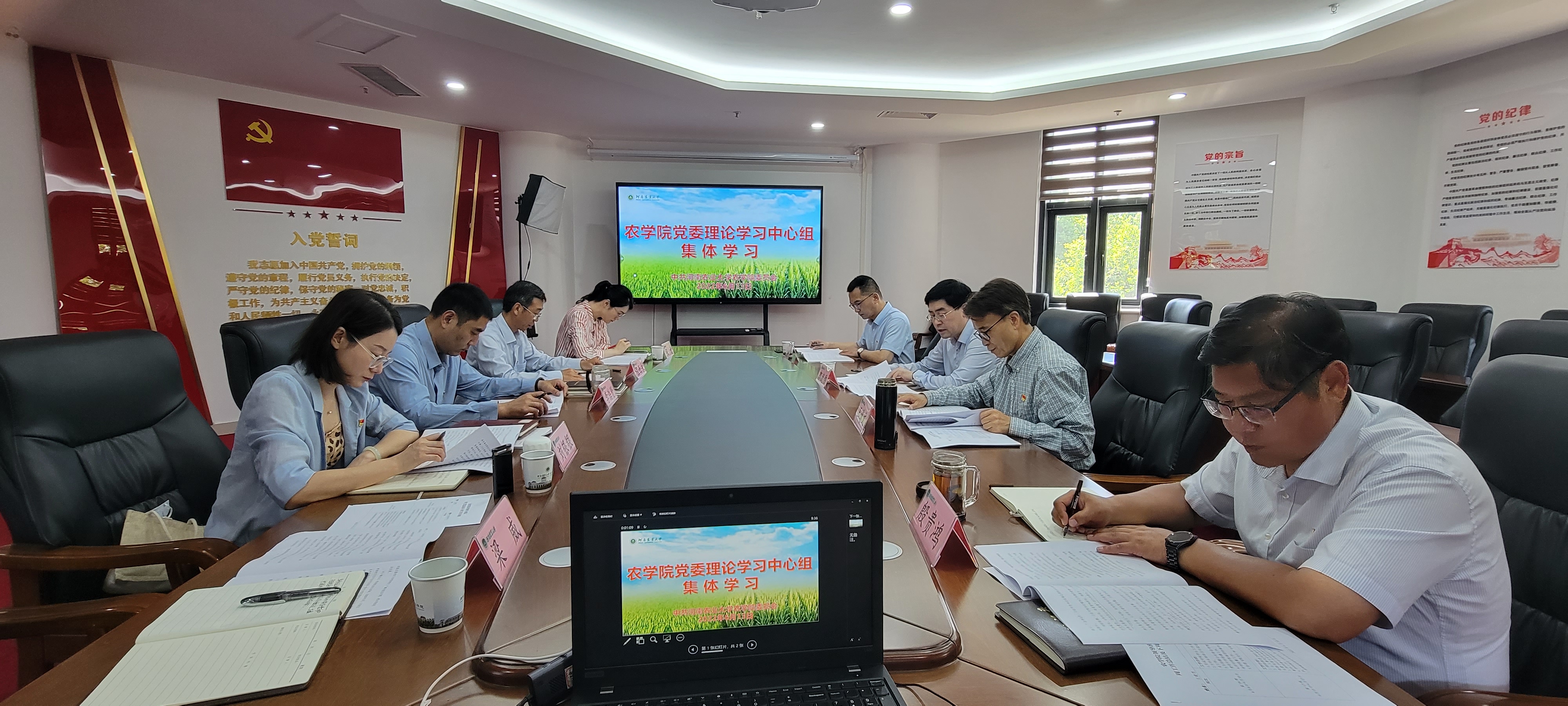 本网讯(通讯员/刘银银)6月13日上午,院党委理论学习中心组在第一实验楼南222会议室召开集体学习会议。全体院领导和院党委委员参加会议,会议由校党委委员、院党委书记郭战伟主持。
