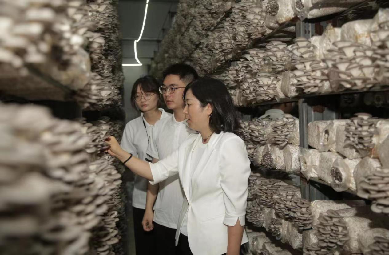 实践团调查小黑平菇工厂化生长情况