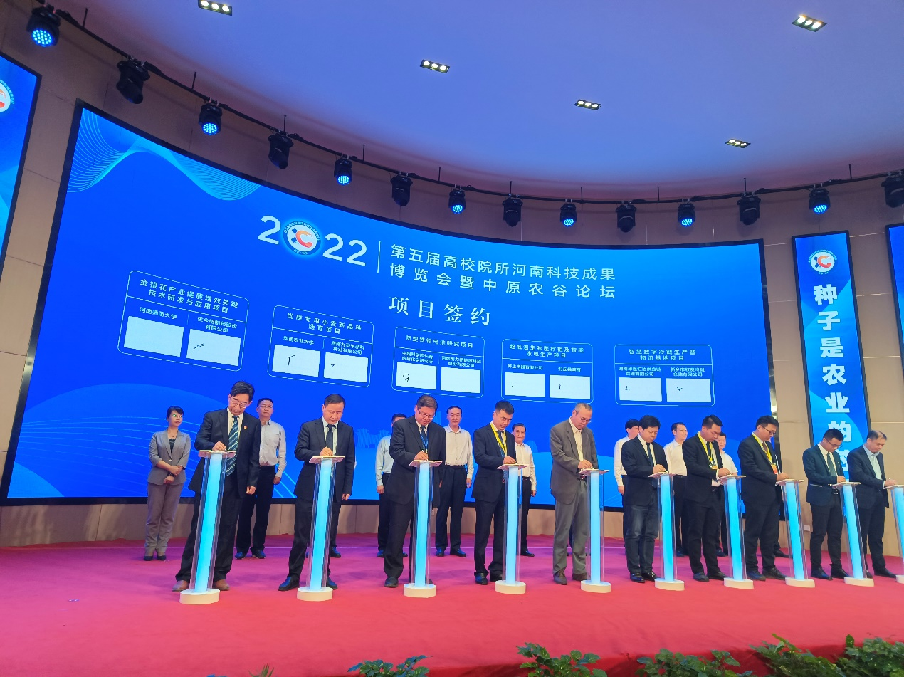 本网讯(通讯员 董纯豪)2022年9月24日上午,第五届高校院所河南科技成果博览会暨中原农谷论坛在新乡市平原示范区举行,副省长武国定出席高博会并宣布开幕。开幕式上,15个重大项目在4位院士及省农业农村厅、省科技厅、省教育厅等单位领导见证下进行了现场签约。