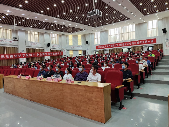 学术副校长、院长王道文致辞。他首先对2022级新生的到来表示热烈的欢迎和衷心的祝贺。他向全体新生介绍了学院发展历史和现状,重点讲述了学院近年来在教育教学、学科建设、科学研究、人才培养、学生工作等各方面取得的成绩。他嘱托全体新生要珍惜机遇,放飞绿色农业梦想,以更加进取的态度投入到学习、生活和工作中,在人生最宝贵的阶段取得更加优异的成绩,成就人生新的辉煌。