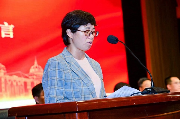 优秀校友代表、全国“人民满意的公务员”、全国粮食生产先进个人张亚丽发言