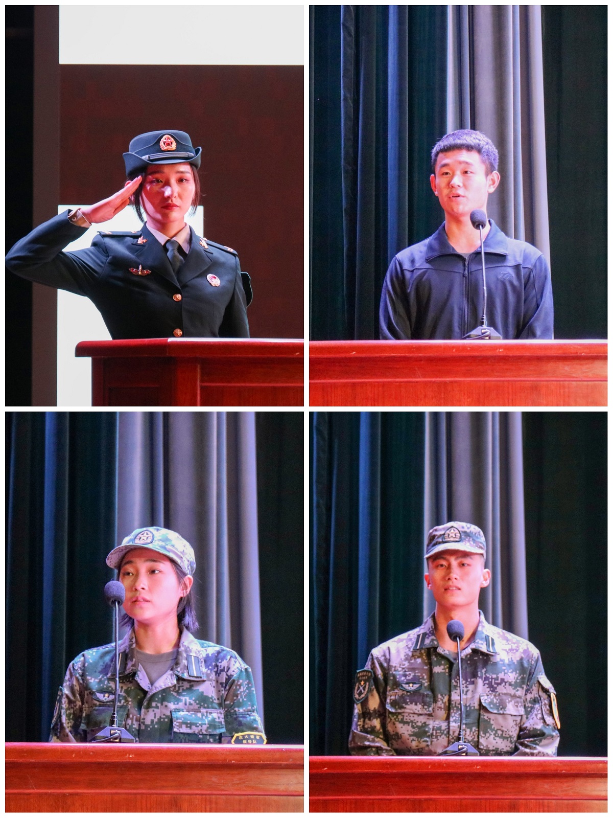 观影结束后,唐朝作征兵入伍宣讲。他主要从征兵入伍条件要求、献身国防的意义、参军入伍的好处、应征入伍的基本原则四个方面展开介绍。他号召广大学子拥军爱国,献身国防伟大事业,激励同学们积极入伍。随后退伍学生赵文迪、张炜峰、范嘉琪、李亚萍分别作个人军旅分享。赵文迪分享了他两年多的军旅生涯铸造了他不怕吃苦、勇于拼搏的精神。张炜峰表示他在军队中收获的战友情是他人生的一笔宝贵财富。范嘉琪分享了她当兵的军旅历程,表示会继续发扬苦干实干精神。李亚萍表示军营生活最宝贵的意义是带给她从内而外的蜕变。动人的经验分享让在场的学生们备受激励,现场响起阵阵掌声。