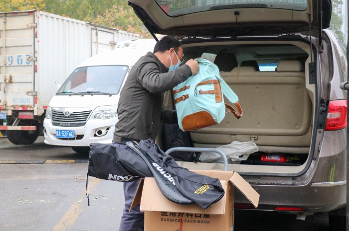 杨习文为封控学生送重要资料和生活用品