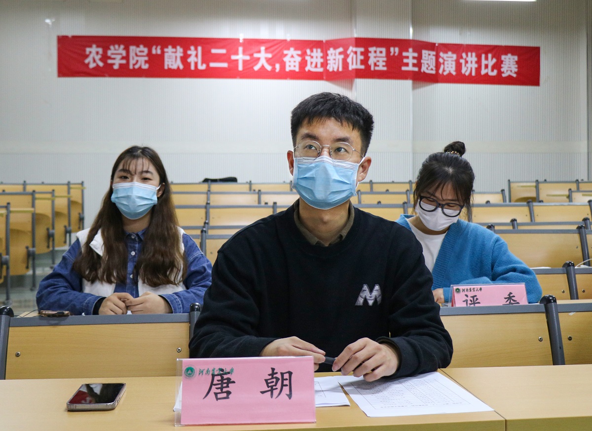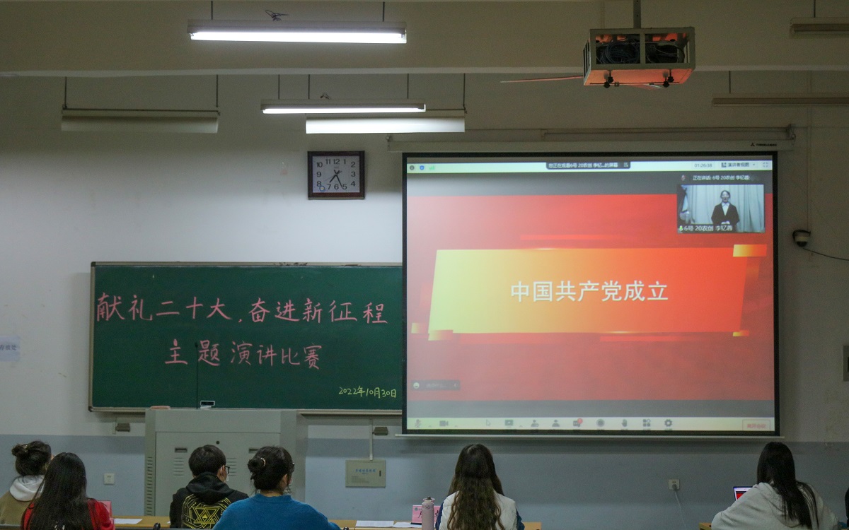 在龙子湖校区繁塔楼D210教室举办了以“献礼二十大,奋进新征程”为主题的演讲比赛决赛。经过初赛选拔,共有15名选手入围决赛。选手通过线上方式进行演讲。院团委老师唐朝、学生会主席团成员赵永峰、邢梦雨,艺术团团长牛瑞利、曹莹担任评委。本次比赛由学生会学实部学生康潇琦、王琳雅主持。