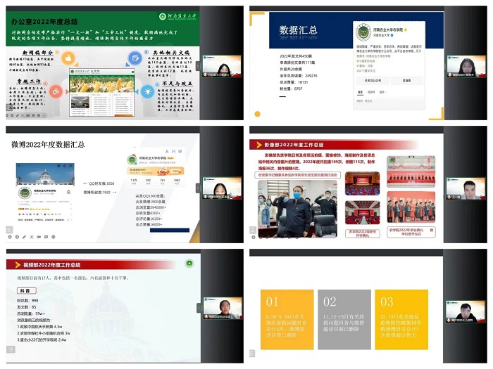召开新媒体中心2022年度述职大会。院团委副书记李盼、院辅导员陈曦冉及新媒体中心全体成员参加会议,会议通过线上方式进行,由办公室副部丁秋雨主持。