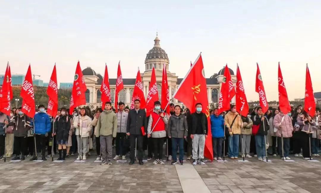 于龙子湖校区中心广场举行"爱祖国·升国旗 "活动。院党委委员、副院长李浩贤,副院长陈锋,学院全体本科生和2022级研究生参加了本次升旗仪式。其中,2022级本科生在文化路校区以线上观看的形式参与活动。升旗仪式由院团委副书记李盼主持。
