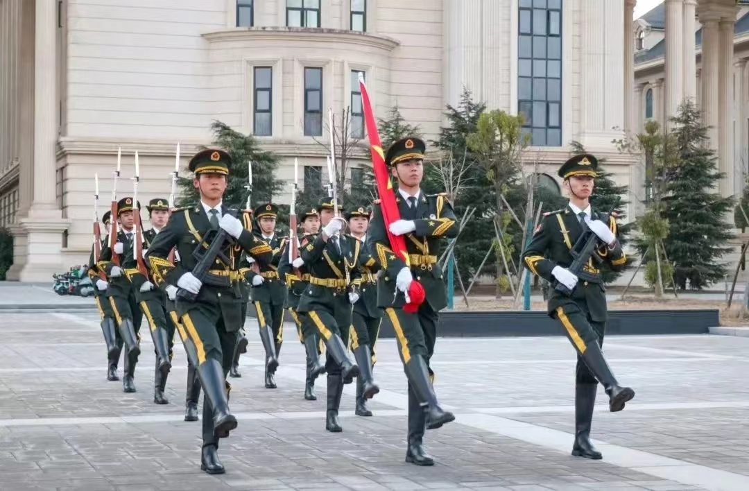 国旗护卫队肩扛国旗走向国旗台