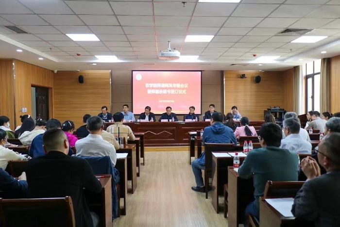 院党委书记马菲作总结讲话,就做好师德师风工作,他提出,目前学院正处于作物学一流学科创建的关键时期,对教师队伍建设提出了新的更高要求,要统一认识,提高站位,切实增强做好教师思政和师德师风建设的思想自觉和行动自觉。要始终坚持把纪律和规矩挺在前面,自觉举起道德高线,绝不碰触纪律红线,严格遵守法律底线,不断强化自律意识,始终保持敬畏之心,让清正廉洁成为日常习惯和自觉遵循。