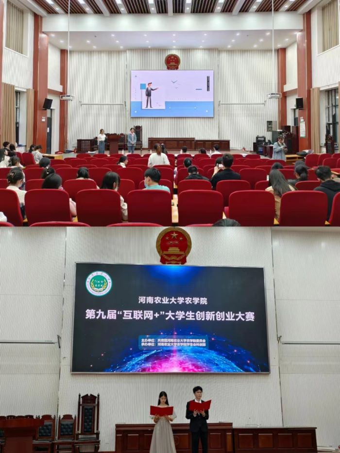 在龙子湖校区模拟法庭举办第九届“互联网+”大学生创新创业大赛。院团委副书记唐朝、院团委老师李玥瑞及部分学生会干部担任评委,2021级、2022级项目团队参与本次比赛。