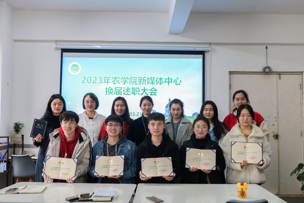 最后,李盼、朱瑞萍、陈曦冉及李玥瑞分别为新媒体中心主任及各部长、副部颁发聘书,全体与会人员合影留念。