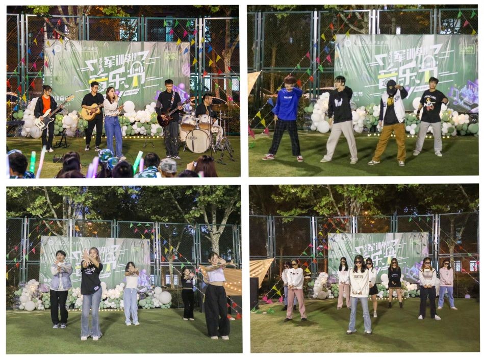 于4月14日在龙子湖校区操场举行2021级军训“草坪音乐节”。校党委学工部副部长张二龙亲临现场,院团委书记朱瑞萍、院团委副书记陈曦冉、院团委副书记唐朝、团委老师李玥瑞与2021级学生一同观赏。本次活动由艺术团成员主持。