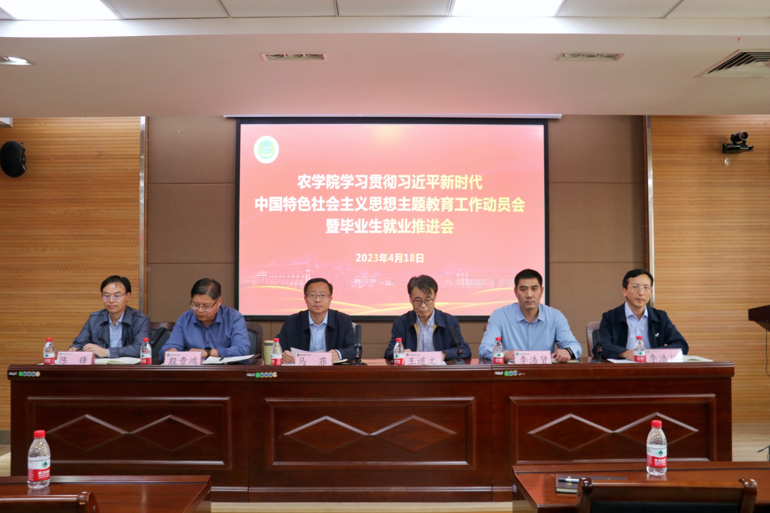 副院长殷贵鸿宣布学院中层干部任免情况;副院长李浩川通报2023届本科毕业生就业情况;副院长陈锋通报2023届研究生毕业生就业情况。