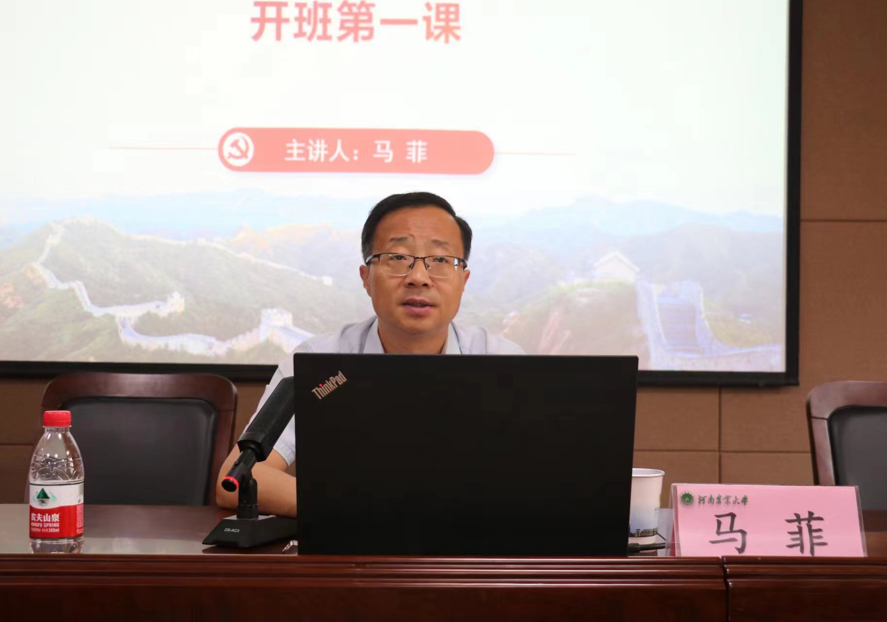 开班仪式结束后,马菲为全体学员讲授开班第一课。他提出开设“青马班”是让为了让大学生骨干、团干部、青年知识分子通过对马克思主义的学习,进一步加强政治修养。马菲利用“道”“法”“术”“器”的模型阐述了马克思主义的优越性,通过五个问题剖析了习近平新时代中国特色社会主义思想的具体内涵,指出大学生学习马克思主义及习近平新时代中国特色社会主义的重要意义,希望学员们勇于担负起时代重任,在思想与实践上发挥好先锋模范作用,带领广大的青年学生共筑中国梦。