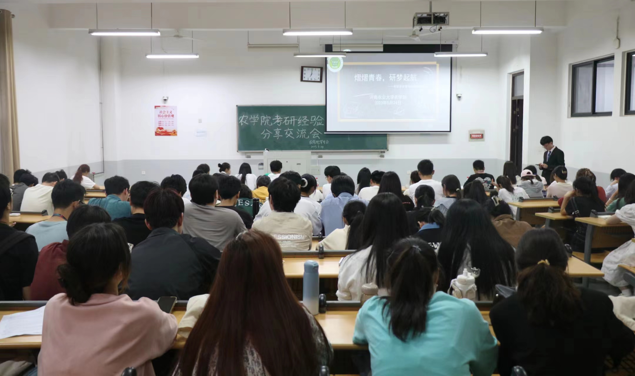 于龙子湖校区D102教室开展以“熠熠青春,研梦起航”为主题的考研经验分享交流会。91吃瓜
