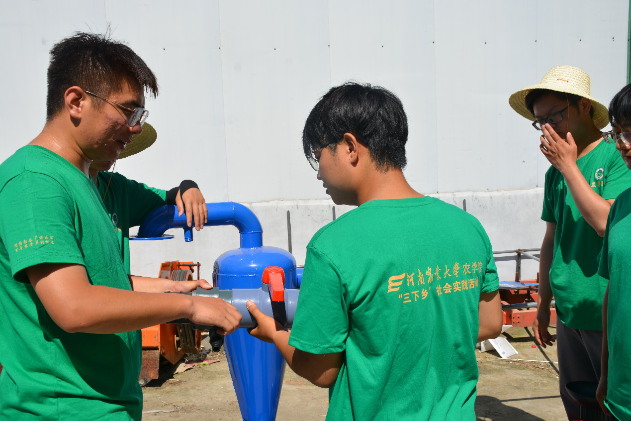 实践团成员对西平县二郎镇中国农技推广站的水肥一体化滴灌设施产生浓厚兴趣,积极参与安装准备工作。