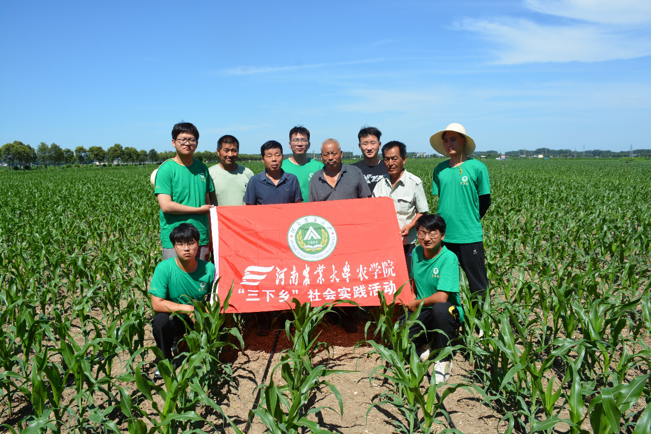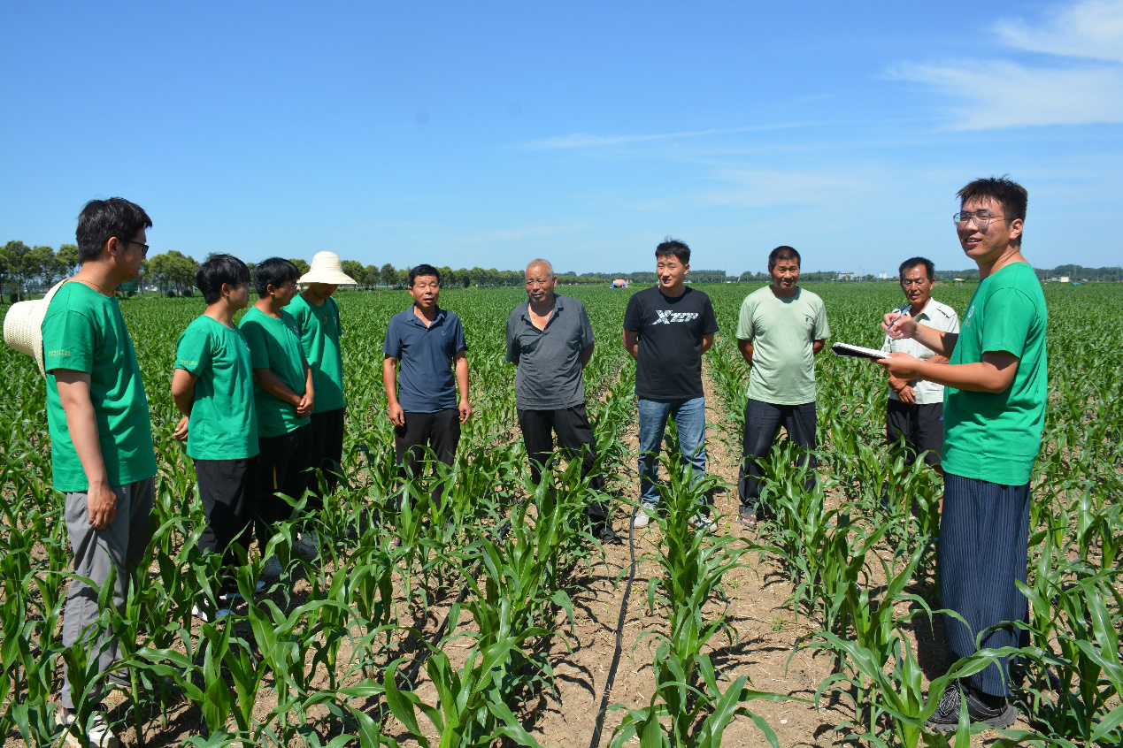 王群教授的带领下到驻马店西平县,走进西平县二郎镇高标准农田里开展玉米密植高产精准调控技术推广调研工作。实践团先后来到西平县二郎镇中国农技推广站、鑫鑫农场等地,与当地的农户及种粮大户交流,并深入了解、学习考察当地夏播实际生产状况。