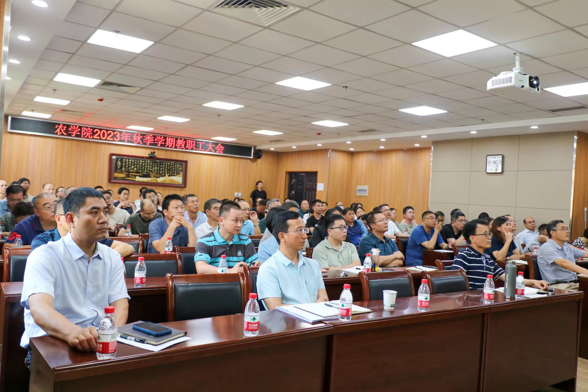 院党委书记马菲从思想学习、教学实践、科研创新、学科建设、合作交流及社会服务六个方面作暑期工作总结,对今后工作提出三点建议:重点工作有亮点、短板工作有提升、常规工作有创新。同时提出了四点要求:一是要有责任感。要严守底线、高度重视学生安全、劳记师德师风、重视意识形态,为创建中国特色世界一流农业大学贡献力量。二是要尽职责。要以高度的思想自觉和行动自觉做好自身职责之内的事,层层落实,以强农兴农为己任,全面提高人才培养质量。三是要讲奉献。要充分发扬奉献精神,保持工作积极性,爱岗、爱生、爱科研。四是要建新功。新学期伊始,全院上下要团结一心起来,凝聚力量,共同努力进一步优化学院氛围。