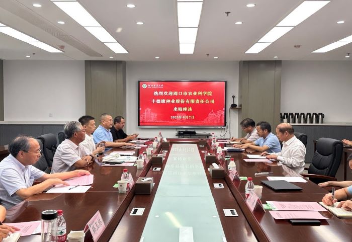 殷贵鸿副院长等专家积极围绕周8425B深入研究和三方合作等内容,就提出了宝贵建议。周口市农科院杨青春院长发表热情洋溢的讲话,周口市农科院作为我校的全面战略合作伙伴,在科学研究、人才培养和服务推广等方面与我校开展全面合作,成效显著。最后,介晓磊校长提出三点要求,一是坚守信心、志在必得,周8425B是历经40多年刻苦创新的原创性突破性新种质,全国19个省市290多家育种单位利用其作为亲本种质,衍生出1000多个通过国家和省级审定的小麦新品种,为保障全国粮食安全和推动小麦遗传育种科技进步做出了巨大贡献;二是瞄定目标、全力以赴,要求全校特别是作物学科,与创建“双一流”目标任务紧密结合,积极主动与周口市农科院和丰德康种业公司等单位无缝对接,全力以赴;三是通力合作、确保成功,我校相关部门要在兼职教授郑天存老师的带领下,成立工作专班,制定详细的路线图和进度表,倒排工期,筹集资金,成立专项,全力做好保障工作,抽调精锐力量,撰写精炼好本子,内外兼修,汇聚起方方面面合力,为早日实现省委、省政府确立的建设中国特色世界一流农业大学的目标做出重要的贡献。