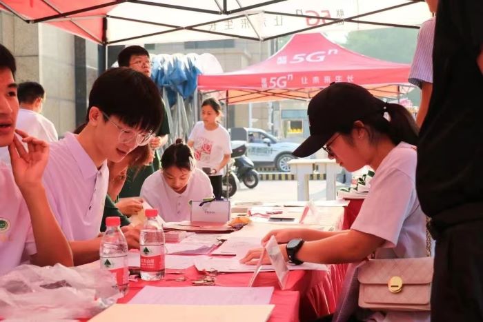 伴随着晨曦的阳光,新生陆续到来。辅导员唐朝和新生班主任在迎新帐篷下静候大家的到来。高举的学院指示牌,随处可见的迎新帐篷,校园内的一花一草,都在欢迎新生的到来。身着红马甲的志愿者们早已翘首以待,他们在人群中来回穿梭,为保障新生的顺利入学而忙碌。签到、领取学生卡、确认入学信息、领取暖心大礼包……新生们在志愿者的指引下来到各自的报到处,她们青春的笑容为校园增添了一抹崭新的色彩。“三、二、一...微笑!”,照片墙前人头攒动,一张张青春洋溢的脸上充满着对大学生活的好奇与向往。新生报到如火如荼地进行着,“学姐,请问接下来是可以直接去宿舍了吗?”“你好,是在这边报到吗?”,志愿者们热情地为新生们答疑解惑。报到结束后,新生和家长们在志愿者的带领下熟悉校园环境,领略农大的优美风光。迎新期间,校党委书记李成伟、校长介晓磊、副校长杨喜田等校领导莅临91吃瓜