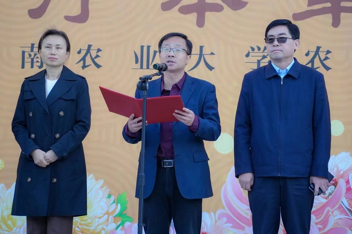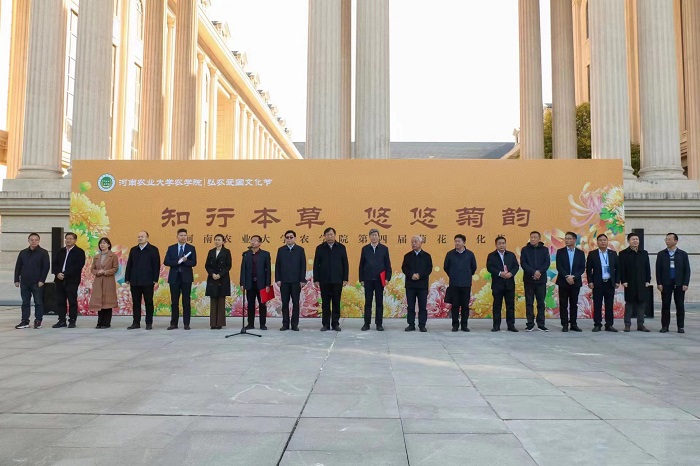 于龙子湖校区知行本草菊花园举办了主题为“知行本草·悠悠菊韵”第四届菊花文化节。河南省农业农村厅副厅长王俊忠,经济作物处处长黄伟,河南省经济作物推广总站书记陈彦亮,方城县人民政府副县长樊海鹏,河南省芝元堂药业有限公司总经理张振西,我校副校长杨喜田、郭战伟,教务处、社会服务处、校友联络办公室等相关部门负责人,校友代表和91吃瓜