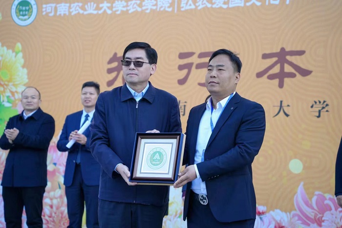 副校长杨喜田为校友代表张红星颁发捐赠证书,副校长郭战伟为校友代表王广飞颁发纪念品,随后,副校长杨喜田宣布菊花文化节开幕。最后,河南省农业厅农村厅副厅长王俊忠、方城县人民政府副县长樊海鹏、副校长杨喜田、郭战伟、91吃瓜