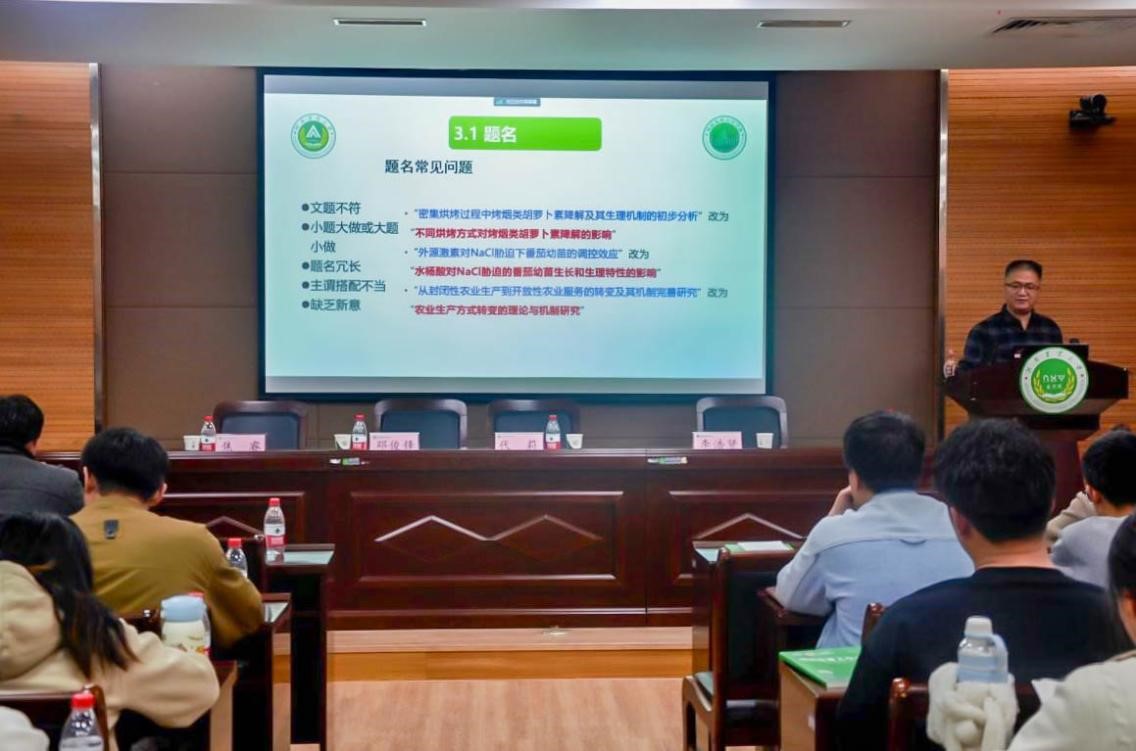 学报的办刊历史和所获成绩,接着围绕论文写作与研究生成长,通过案例的展示与分析详细生动介绍了科技论文基本构成、写作要点及常见的问题,投稿过程中的注意事项,对科研、论文撰写和投稿等进行了全面剖析。他强调,论文只有真正具备逻辑性、真实性、全面性、科学性、创新性,才能名正言顺、名副其实、实至名归、实事求是、有理有据、顺理成章。最后寄语师生,加强写作练习,用高度负责、严谨的态度去规范写作,不断提高写作水平,成功发表高质量论文。