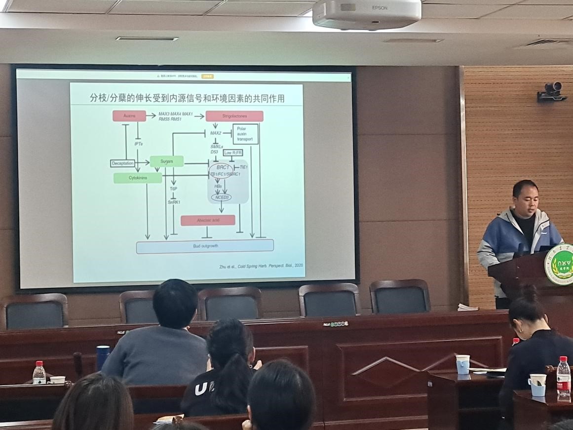 ,被聘为校杰出人才和校特聘教授,她以“Identification and receptor mechanism of TIR-catalyzed second messenger in plant immunity”为题介绍了TNLs抗病小体作为NAD+水解酶产生免疫第二信使并调控不同下游信号通路的分子机制,同时分享了自己在科研工作中的心得体会,鼓励大家勇于挑战科学难题。