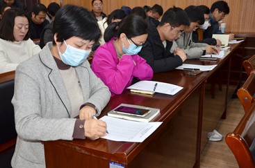 与会教师填写民主评议表