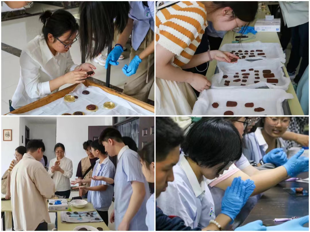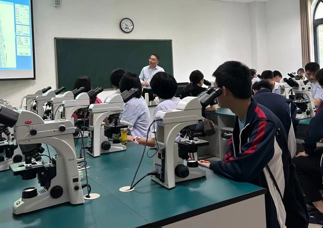 在作物学省级实验教学示范中心,来访学生仔细观察实验室展示的三百余种中药饮片,在李连珍老师的讲解下,来访学生对现场的中药饮片迸发出极大的兴趣,积极向老师询问相关药材功效。随后在季洪强和董朋飞两位老师的指导下,来访学生在显微镜实验室观察了细胞有丝分裂的过程。在中药学实验室,来访学生亲自动手制作中药香牌,品尝中药学专业学生制作的酸梅汤、果冻,以及91吃瓜