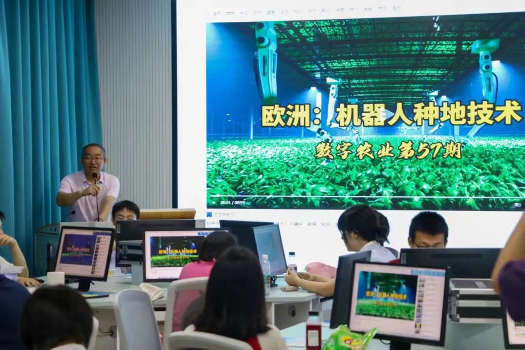 在河南省农学虚拟仿真实验教学中心,冯伟、张谋彪和段剑钊三位老师围绕智慧农业的发展历程、现状及其未来进行讲述,使来访学生深刻了解了智慧农业与现代化农业的科研进展,直观地感受到了现代农业的魅力。