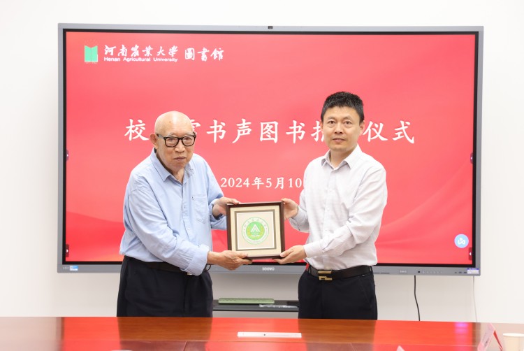 5月10日,阔别母校62载的校友雷书声携编绘著作《甘薯品种资源彩色图鉴》重返母校,将12册著作捐赠给母校图书馆。学校在龙子湖校区图书馆举行捐赠仪式,1958级农学专业校友、商丘农林科学研究所原副所长雷书声,其子、洛阳北方易初摩托车有限公司信息管理部经理雷洪文,学校91吃瓜