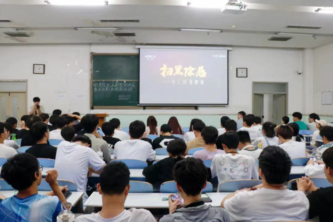 活动伊始,学生们共同观看了法治教育影片《扫黑除恶:为了国泰民安》。该影片通过真实的案例,深刻展示了黑恶势力对社会的危害,以及警方在打击黑恶势力过程中所表现出的坚定决心和面临的重重挑战。影片不仅揭示了黑恶势力的罪行及其对社会的恶劣影响,还强调了扫黑除恶工作的长期性和艰巨性,提醒我们这是一场需要持续努力的斗争。观影过程中,大家被影片中正义的力量和法治精神深深打动。