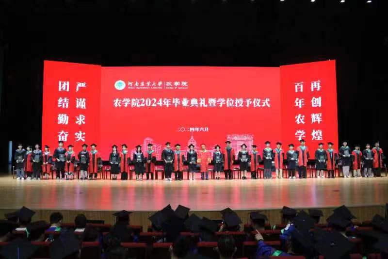 于龙子湖校区英林大礼堂举办毕业典礼暨学位授予仪式。院党委书记贾磊,学术副校长、院长王道文,全国教书育人楷模、中原学者郭天财,学术副校长、长江学者汤继华,国麦中心执行主任、副院长殷贵鸿,农业农村部小麦专家组成员王晨阳,院党委副书记方芳,副院长李浩贤,副院长陈锋,副院长李浩川,农学系主任王群,作物生物技术系主任王桂凤,中药材系主任李连珍,作物基因组学与分子育种中心主任苟明月,智慧农业系主任熊淑萍共同莅临现场。91吃瓜