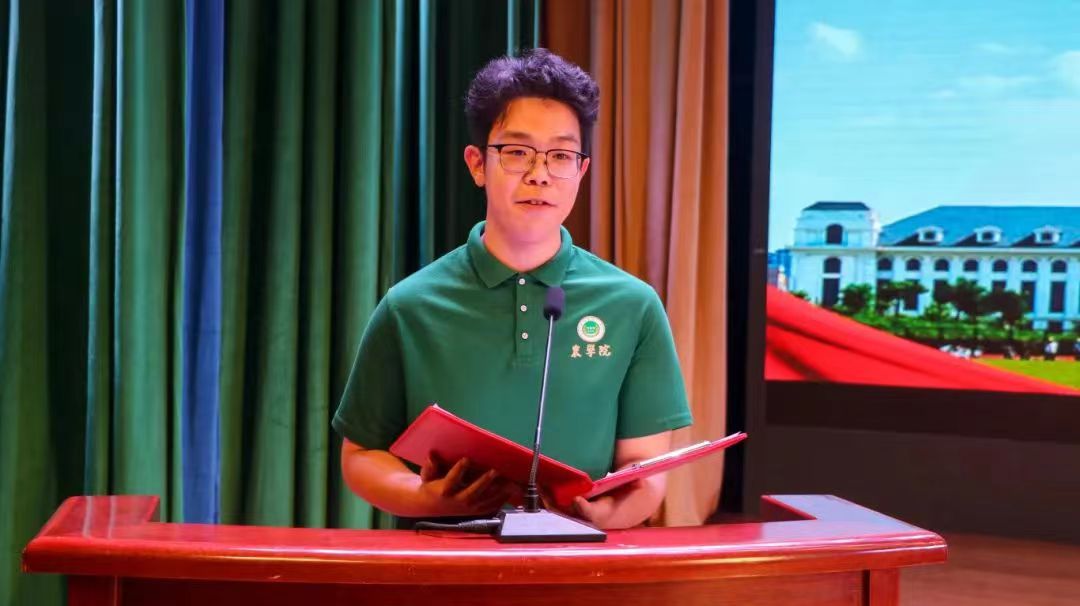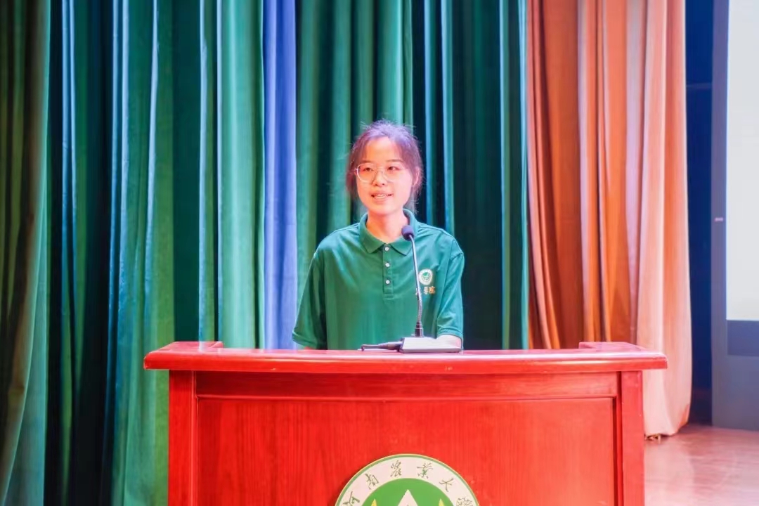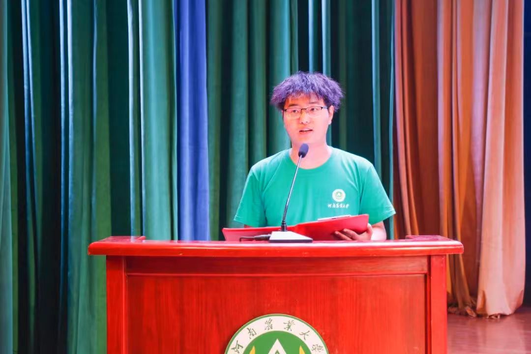 社会实践优秀个人亓泽朋发言,他结合自身的经历分享了三下乡实践经验,呼吁大家把论文写进乡村振兴的春春里,把青春奉献在服务“三农”的旅途中,用我们的实际行动喊出农业兴国的最强音。