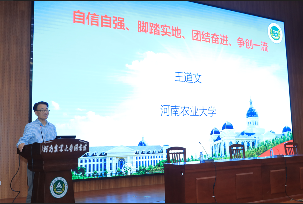 随后,院长王道文作了题为《自信自强 脚踏实地 团结奋进 争创一流》的一流学科创建报告。报告指出,当前和今后一个时期是以中国式现代化全面推进强国建设、民族复兴伟业的关键时期,而教育、科技、人才是中国式现代化的基础性、战略性支撑,新形势下,学院将聚焦优势,以强劲的党建成果为基础,坚实的人才队伍为引领,厚重的科学研究为支撑,高效的社会服务为根基,广泛的国际交流为桥梁,脚踏实地,团结奋进、追求卓越,加快建设中国特色、世界一流优势学科。