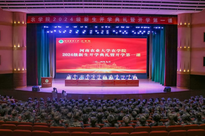 2024级新生开学典礼暨开学第一课于文化路校区大礼堂隆重举行,510名本科生缘聚河南农大,满怀憧憬与期待,逐梦新篇章,开启新征程。学院领导班子成员、各系主任、新生班主任、团委老师及全体本科生新生出席会议。会议由院党委副书记方芳主持。