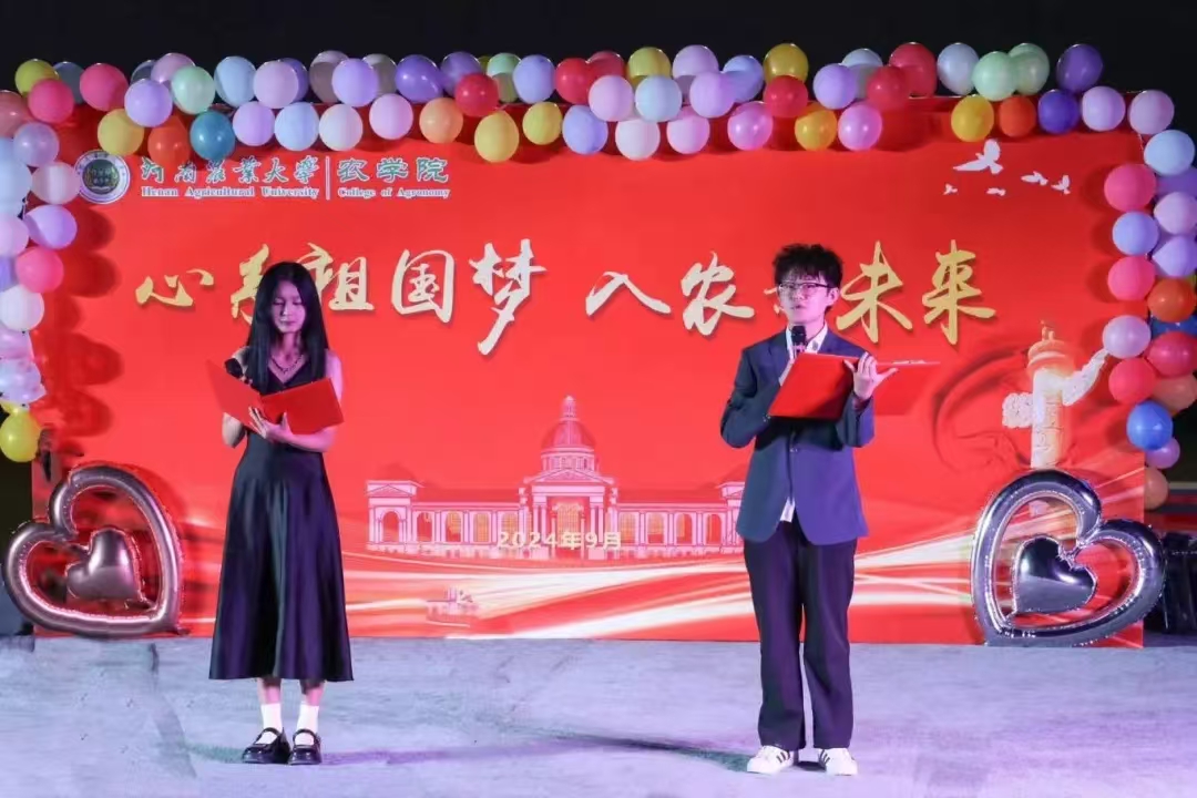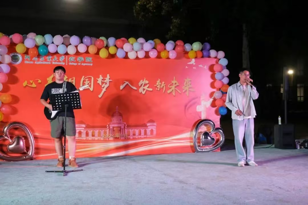 时光流转,秋风相邀。活动在朗诵《盛世中国》中拉开帷幕,农院学子用深情的朗诵表达对共和国生日的祝福。农院百名师生在草坪上席地而坐,操场上的璀璨灯光,是学生内心翻滚的滚烫欢呼;晚风里的流光溢彩,是学生身体里涌动的青春热血。晚会期间,杨航老师用弹唱《等你下课》送给新生祝福和期望,唐朝老师表演了一段动感十足的街舞,热烈而张扬,给学生们带来了一场视觉盛宴,将气氛拉上了高潮。艺术团和au街舞社展示了舞蹈《MEOW》,以舞步为画笔,舞动人生、唱响青春。生科24-2班的杜莹莹同学带来舞蹈《鸳鸯戏》,她用优美的舞姿展现了爱情的美好与浪漫。主持人用简单有趣的小游戏《你来画我来猜》拉近学生们之间的距离,现场气氛十分活跃,学生沉浸在晚会轻松欢快的氛围之中。生科1班全体学生带来大合唱《起风了》唱响了青春的韵味,热情奔赴下一场山海。最后,师生合唱歌曲《晴天》,在音乐的旋律里,让青春记忆的篝火,熊熊燃起。迎新音乐会在大家合影中圆满落幕。