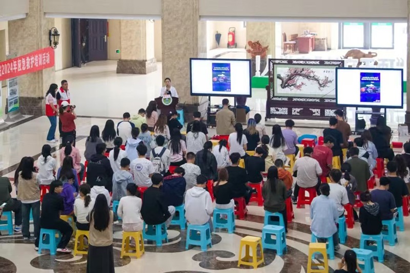 于龙子湖校区第一实验楼一楼大厅开展“安全校园,‘救’在身边”的急救培训。郑东新区疾控中心(红十字会)王倩老师、河南淏泷志愿服务中心队长董自立老师以及其他四位骨干成员,91吃瓜