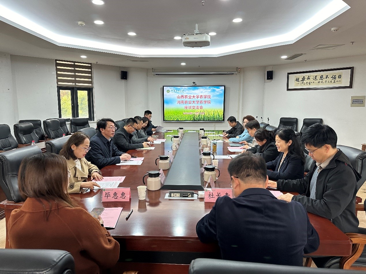 院长原向阳一行赴学院交流座谈。学术副校长、中国现代农业联合研究生院生物育种学部执行主任、院长王道文、中国现代农业联合研究生院生物育种学部副主任王春丽、院党委副书记方芳、副院长殷冬梅、省部共建小麦玉米国家重点实验室副主任王桂凤、苟明月、部分系室主任、教师代表及双方联合培养的研究生参加座谈,殷冬梅主持会议。