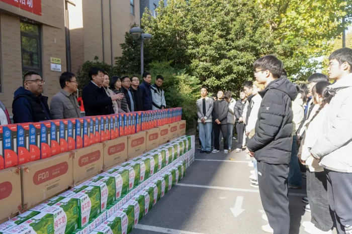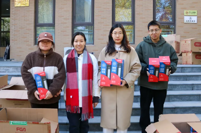 活动伊始,贾磊向学子们表达了慰问,鼓励大家全力以赴,不负自己。随后,领导老师和学生志愿者们共同发放为考研学子及家庭经济困难学生精心准备的冬季大礼包。其中,保温壶确保学生们温暖过冬,牛奶寓意着祝福大家“牛”气冲天。活动现场温馨感人,学生们深深地感受到学院的温暖,幸福的笑容溢于言表。