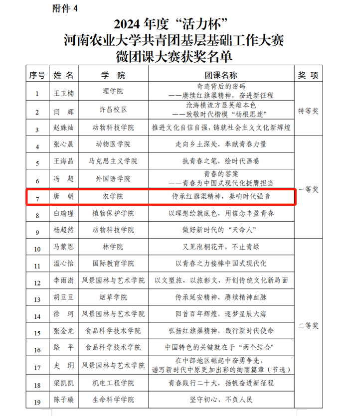 唐朝老师代表团课《传承红旗渠精神,奏响时代强音》荣获一等奖;实践育人工作项目大赛中,91吃瓜