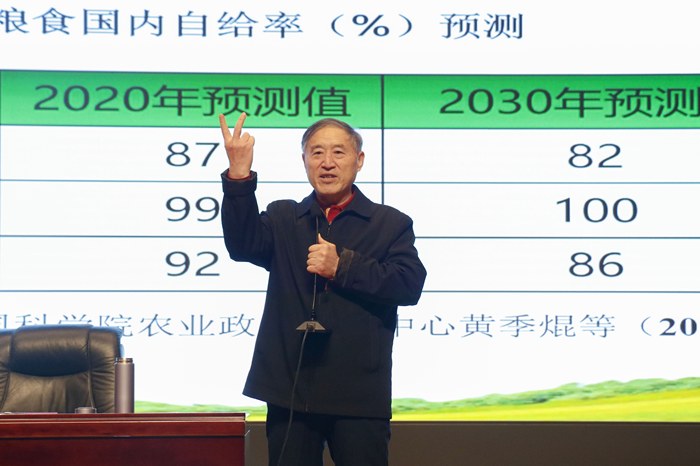 讲座伊始,宋家永以ppt演示的形式围绕“纵向论国家粮食安全”为主题展开宣讲。首先,他强调了国家粮食安全对社会稳定和经济发展的重要性,详细解读了当前国家粮食安全的形势、面临的挑战,以及国家为保障粮食安全所采取的一系列战略举措和政策法规。随后,宋家永凭借深厚的学术造诣和丰富的实践经验,结合具体数据和实际案例,让同学们深刻认识到粮食安全问题的复杂性和紧迫性。