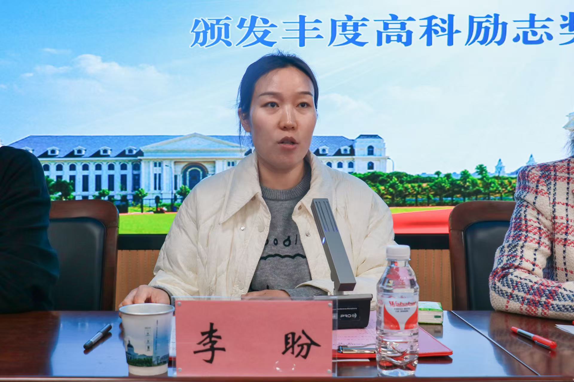 本科生获奖代表王璐和研究生获奖代表高俊鸽先后发言,她们表示,非常诚挚地感谢丰度高科企业和学院共同设立的该项励志奖学金,该奖项不仅是物质上的奖励,更是寄托了企业对青年学子的殷切期望,她们表示,在今后的学习和生活中将刻苦专研、不断奋进,成长于社会,回馈于社会,并祝愿丰度高科公司蓬勃发展。