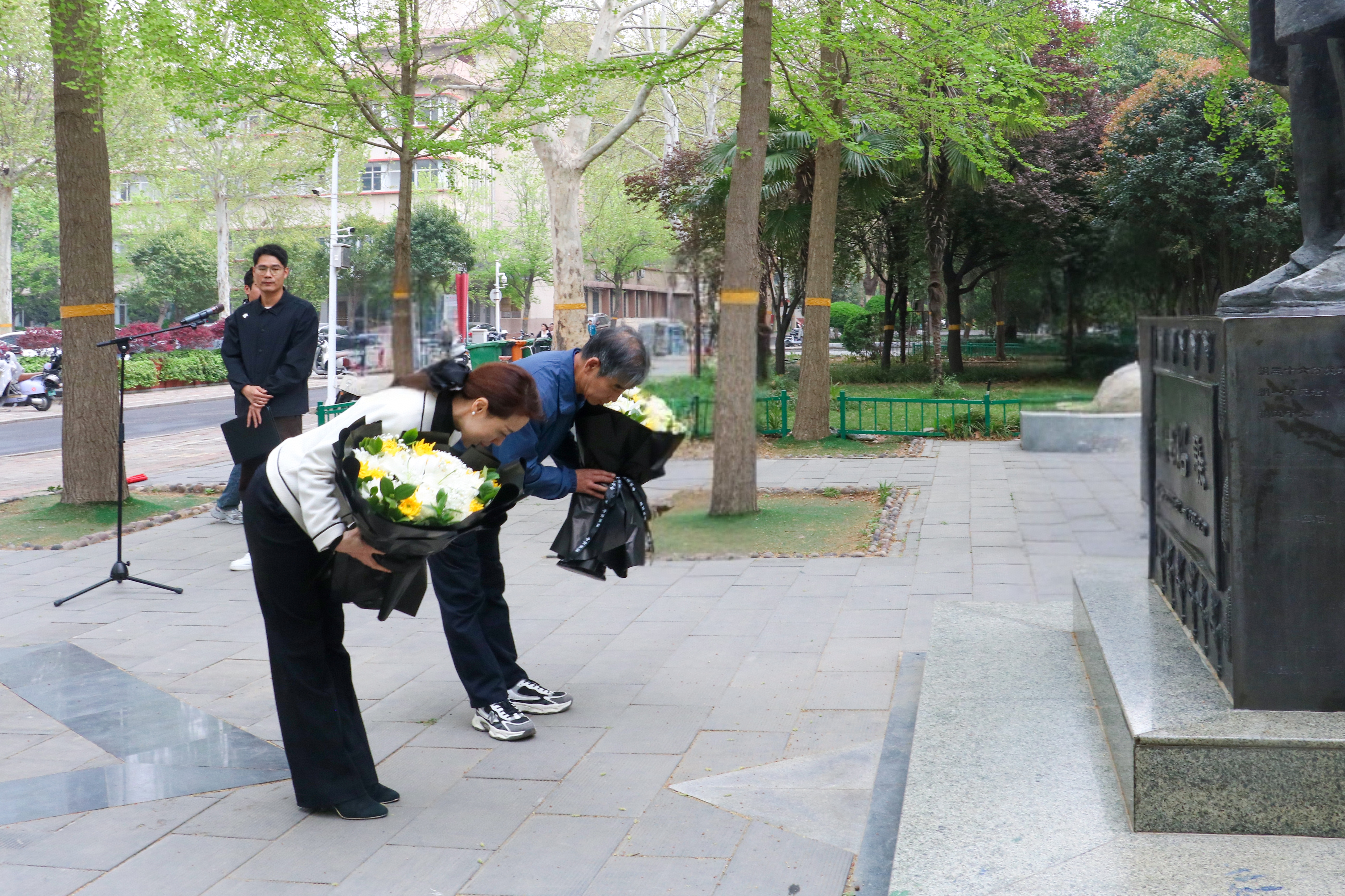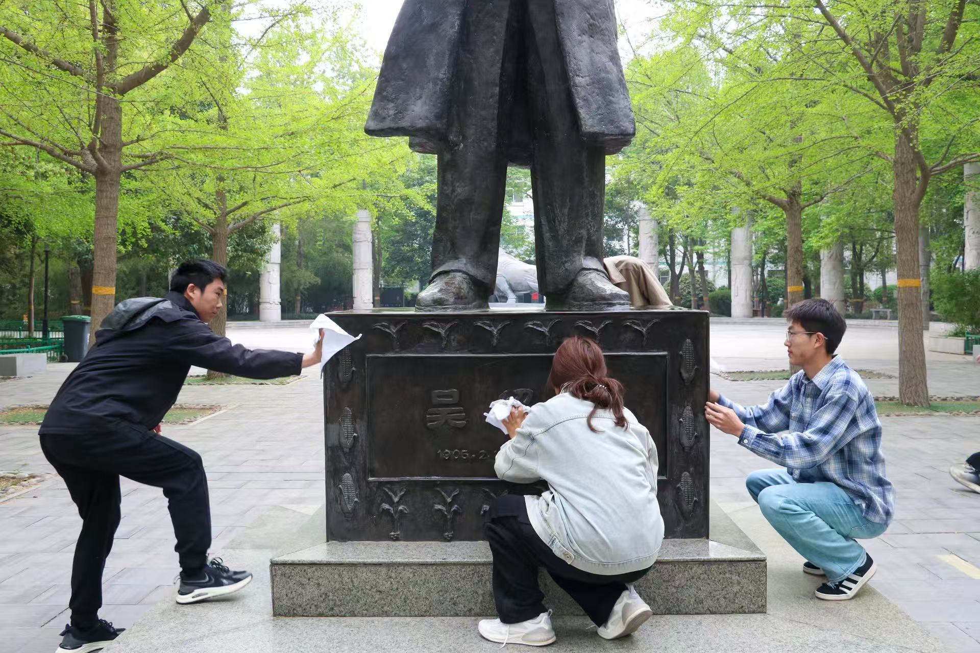 活动伊始,现场师生对吴绍骙先生的铜像进行擦拭清洁,并列队依次献花、鞠躬、默哀,表达对吴老的崇高敬意与深切缅怀。