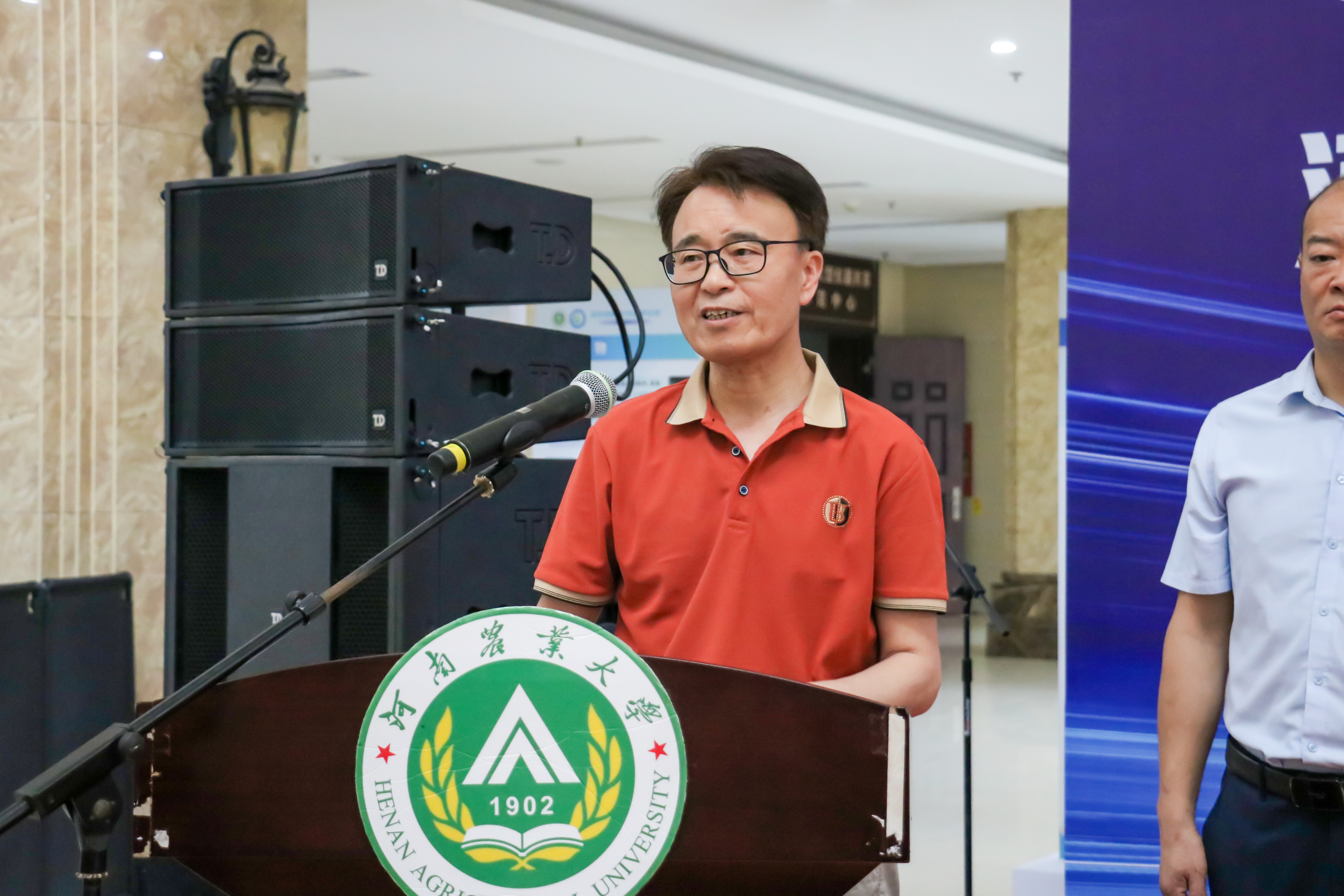 副校长郭战伟宣布招聘会开幕,他指出种子作为农业"芯片",是保障国家粮食安全的核心命脉。此次招聘会既是落实学校毕业生就业提质扩面计划的务实之举,也是服务河南省"中原农谷"建设、助力乡村振兴的具体实践。他期望学院以“农业芯片”专场招聘会召开为契机,实现人才供需精准对接,培育更多"一懂两爱"三农人才,为国家粮食安全及地方发展贡献力量。