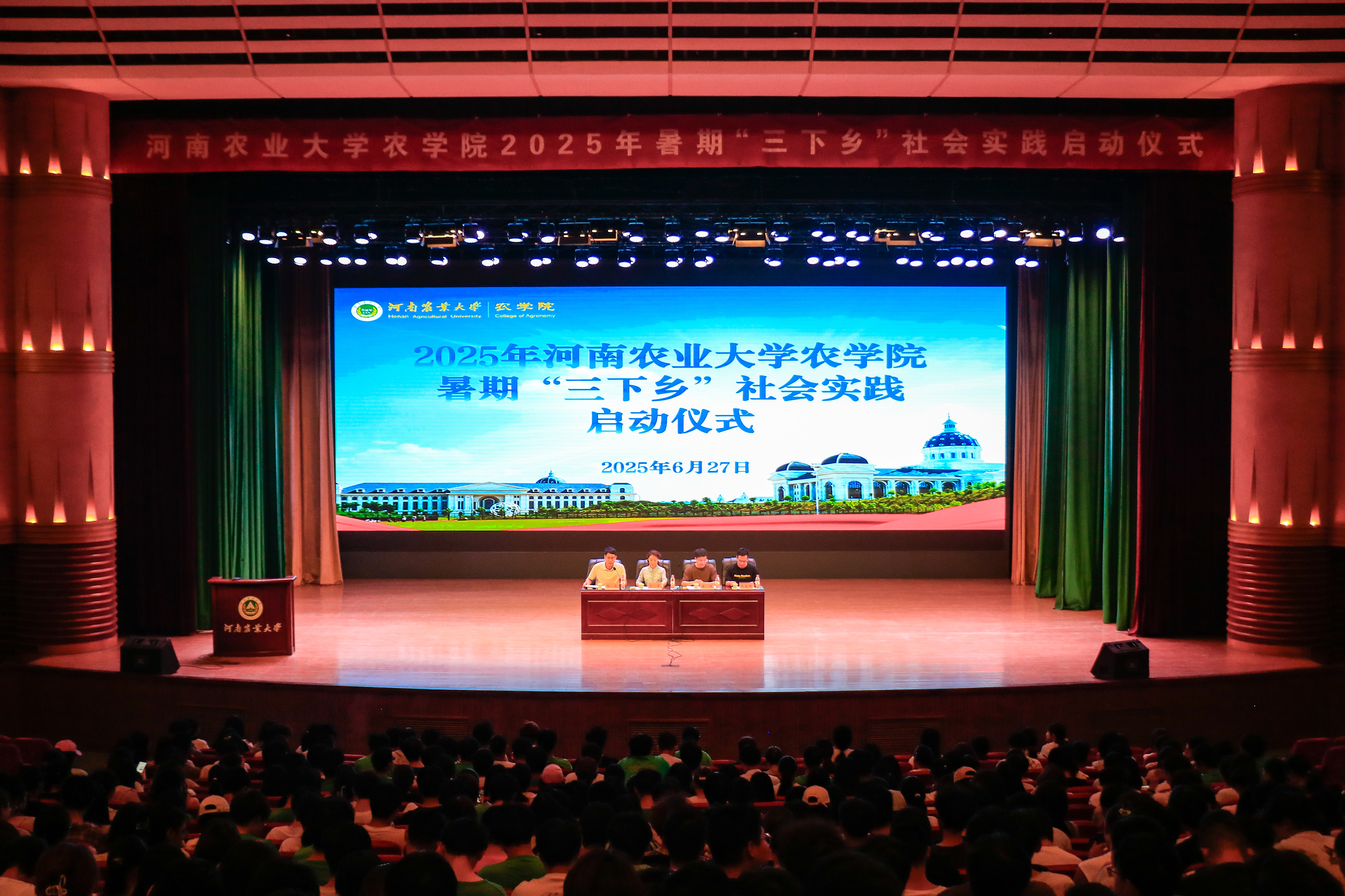 在文化路校区大礼堂举行2025年暑期“三下乡”社会实践启动仪式。院党委副书记方芳,院团委副书记唐朝,院团委老师杨航,院辅导员张俊辉与2024届全体学子共同参与,会议由杨航主持。