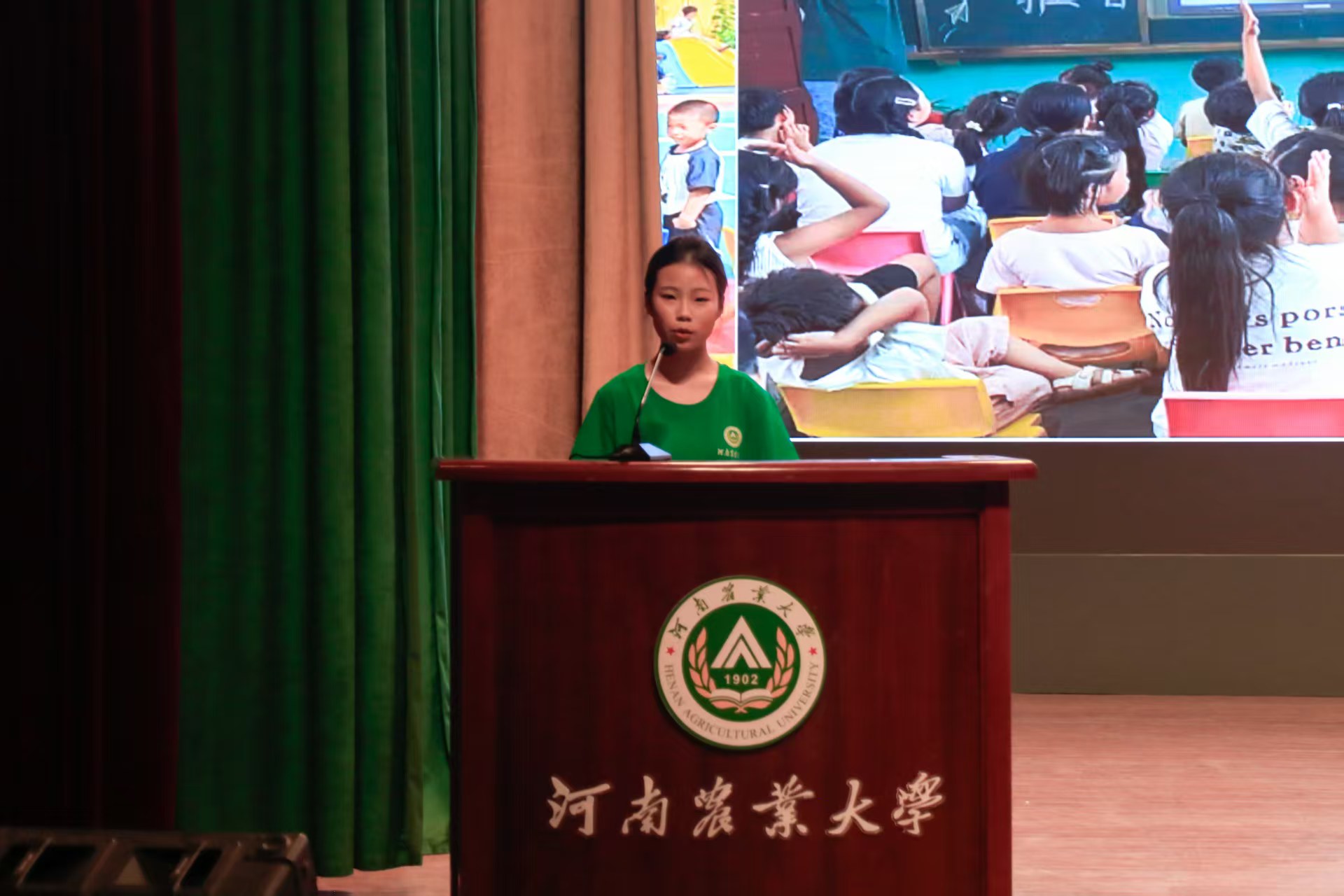 社会实践优秀团队“普语促发展,乡音系振兴”成员郭润涵以“撷取星火,步履不停”为主题进行了PPT汇报和MV展示,分享团队深入原阳县吴寨村开展街头调研、农田实践、推普宣讲及乡村支教等活动的实践历程与解决问题的经验,生动呈现推普与农学结合助力乡村发展的成果。