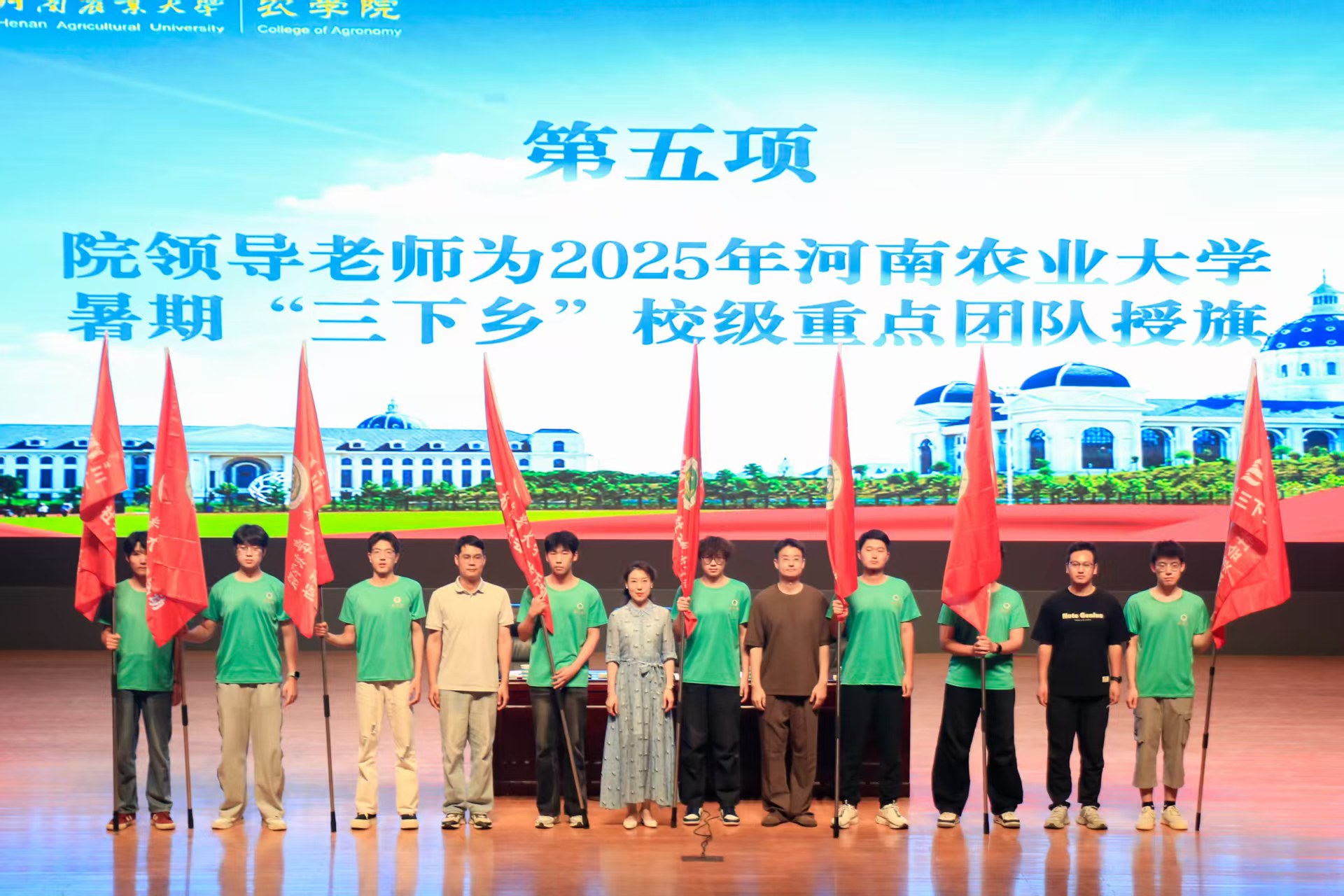 随后,领导老师为学院2024年暑期社会实践重点团队授旗,鲜艳的旗帜在同学们手中高高飘扬,象征着青春的热情与担当。