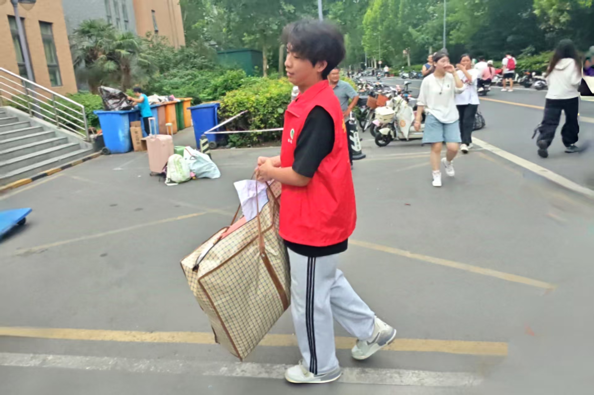 由学生党员、预备党员、入党积极分子组成的志愿者团队早早抵达各搬迁点。他们身着统一标识服装,穿梭于宿舍楼与搬迁车辆之间,为搬迁学生提供全方位服务。在宿舍区,志愿者协助学生打包行李、搬运重物,对易碎物品进行细致防护;在搬运车进入校园时,志愿者们有序引导车辆停放、装卸,维持现场秩序,避免拥堵;在新宿舍区,志愿者主动帮助新生搬运行李至对应寝室,并耐心解答搬迁相关疑问。志愿者们用实际行动诠释奉献精神,成为搬迁现场一道亮丽的风景线。